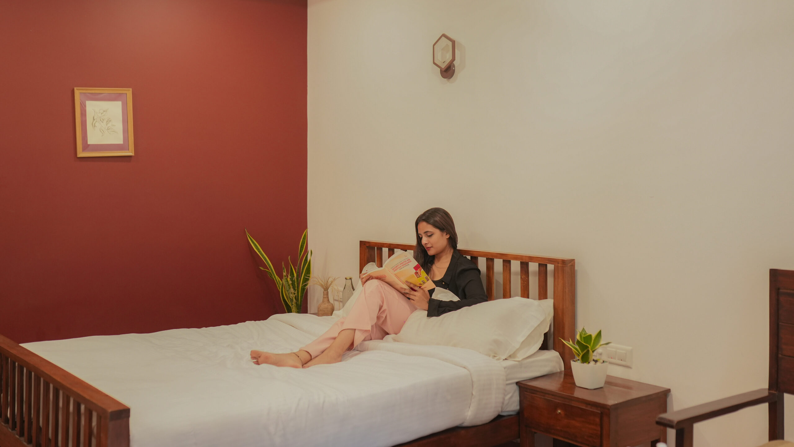 five rooms include balconies, with a common veranda and a spacious hall for shared use. Thoughtfully designed and furnished, the rooms offer a comfortable stay with all essential amenities.